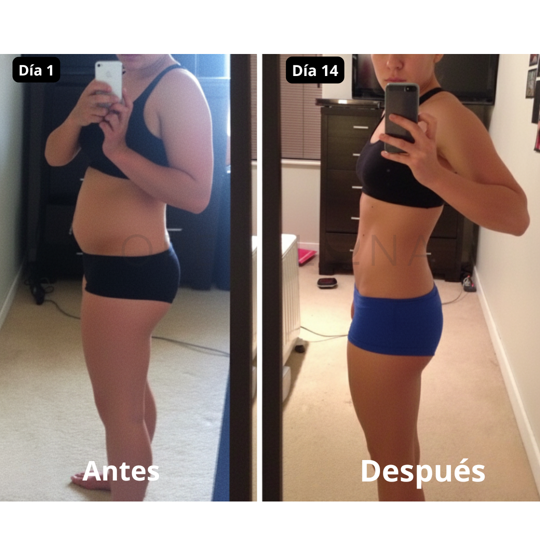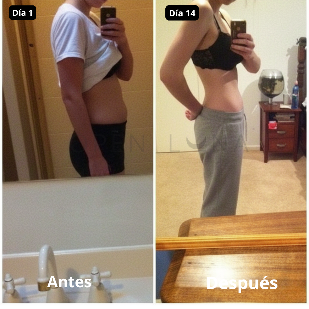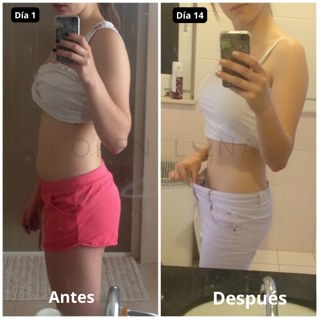 Después de dos semanas, la inflamación visible suele bajar: te ves y te sientes menos hinchado/a. Ir al baño se vuelve más regular y el apetito se siente más estable, sin picos tan intensos.